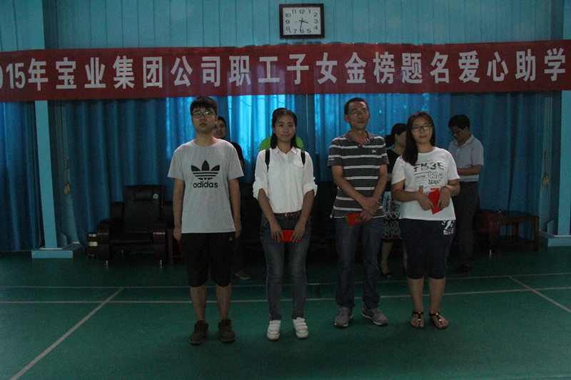 2015年8月27日下午,宝业(集团)公司组织开展了2015年“爱心助学”活动,集团公司副总经理谭照明先生、代均康先生、财务总监黄晓琴女士和房地产总经理汪军先生出席了本次活动。根据公司“爱心助学”奖励制度对15名考入本科院校的职工子女进行了奖励,并将助学奖金发到了这15名的职工子女手中。